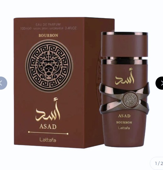 Asad Bourbon de Lattafa Perfumes es una fragancia de la familia olfativa Oriental Especiada para Hombres. Esta fragrancia es nueva. Asad Bourbon se lanzó en 2025. Las Notas de Salida son lavanda, pimienta rosa y ciruela Mirabel; las Notas de Corazón son cacao, Davana y nuez moscada; las Notas de Fondo son vainilla Bourbon, ámbar y vetiver.